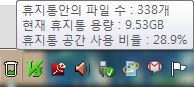 ▲ 트레이에 있는 TrayBin의 아이콘에 마우스를 가져다 놓으면, 휴지통의 정보가 나타납니다.