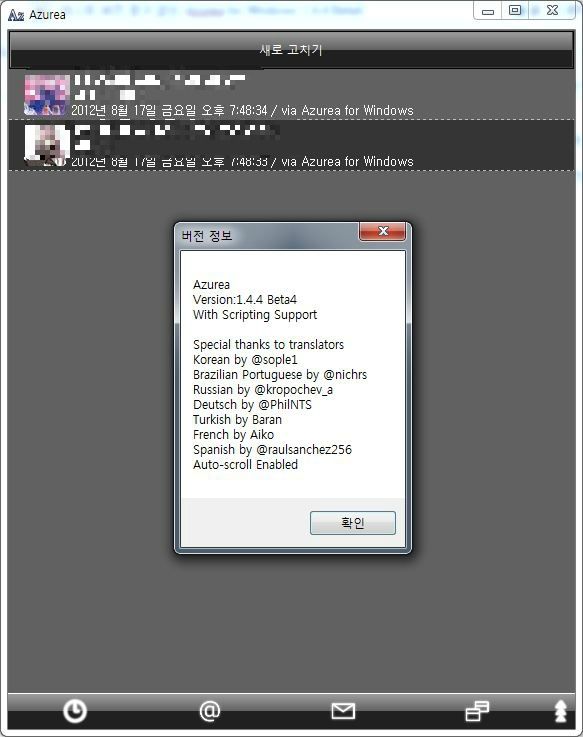 제가 사용하는 트위터 클라이언트 Azurea for Windows가 업데이트 이후로 좀 이상하더군요.