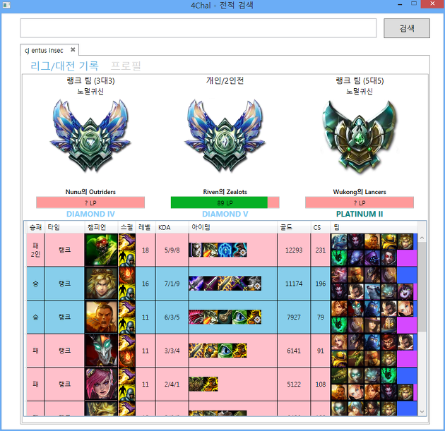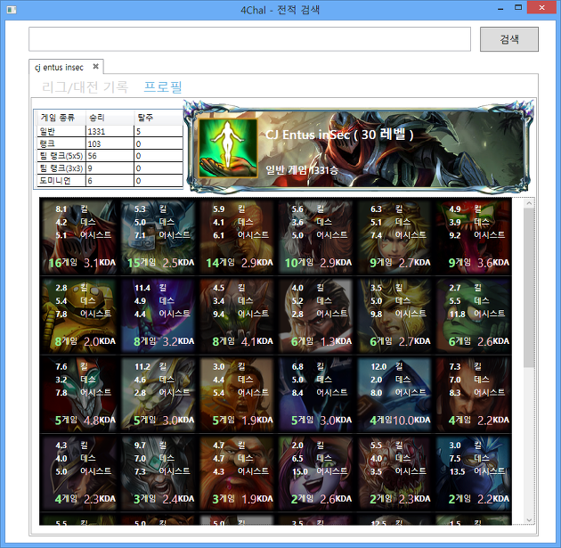 4Chal(사찰) 1.0.8 - 리그 오브 레전드(롤) 전적 검색